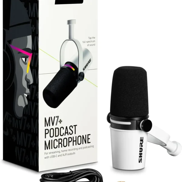 Shure MV7+ Dinamik Mikrofon – LED Dokunmatik Panelli USB/XLR Profesyonel Yayıncı Mikrofonu (Beyaz)