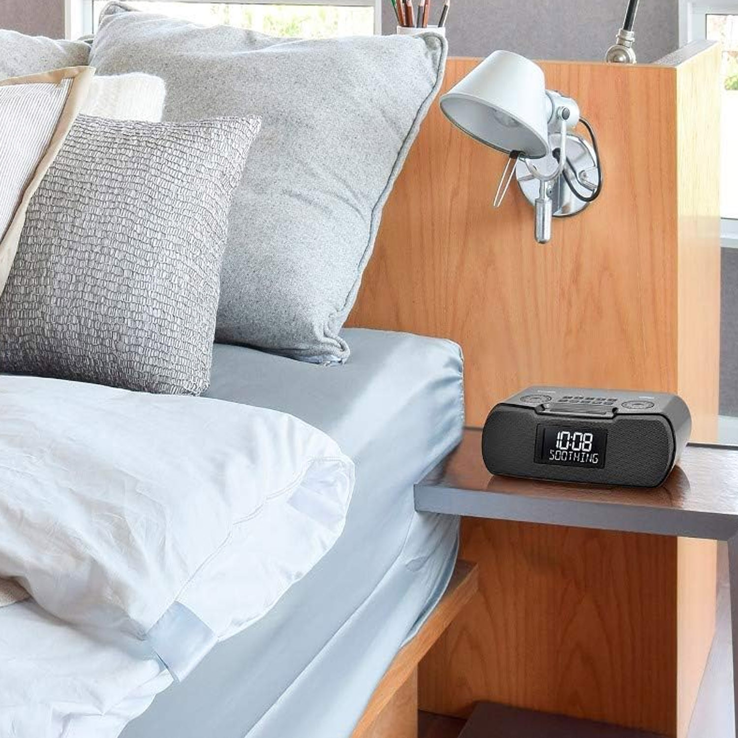 Derin bas ve ayarlanabilir ses kontrolleriyle güçlü ses performansı, AM/FM dijital radyo ve 10-18 istasyon hafızası. 27 rahatlatıcı ses seçeneği ile uyku, meditasyon ve odaklanma desteği. USB şarj çıkışı, Bluetooth (NFC ile hızlı eşleşme) ve kademeli alarm özellikleriyle modern ihtiyaçlara cevap veren şık ve kompakt bir tasarım.